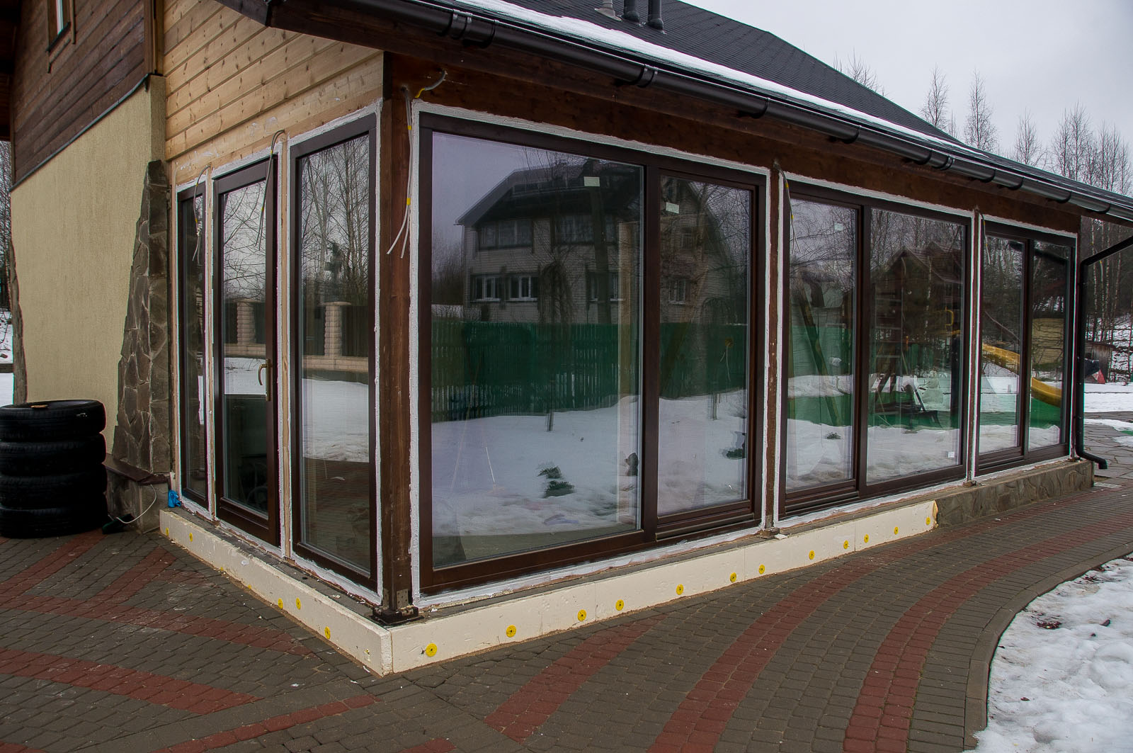 Выбрали для установки на террасу окна из ПВХ, хотя сначала хотели поставить поликарбонат. Мягкое стекло оказались оптимальным вариантом по цене, прозрачности и мобильности – хорошо пропускают свет, задерживают пыль и ветер, а при необходимости можно легко свернуть и даже снять на зиму. Посмотрим, что будет дальше.